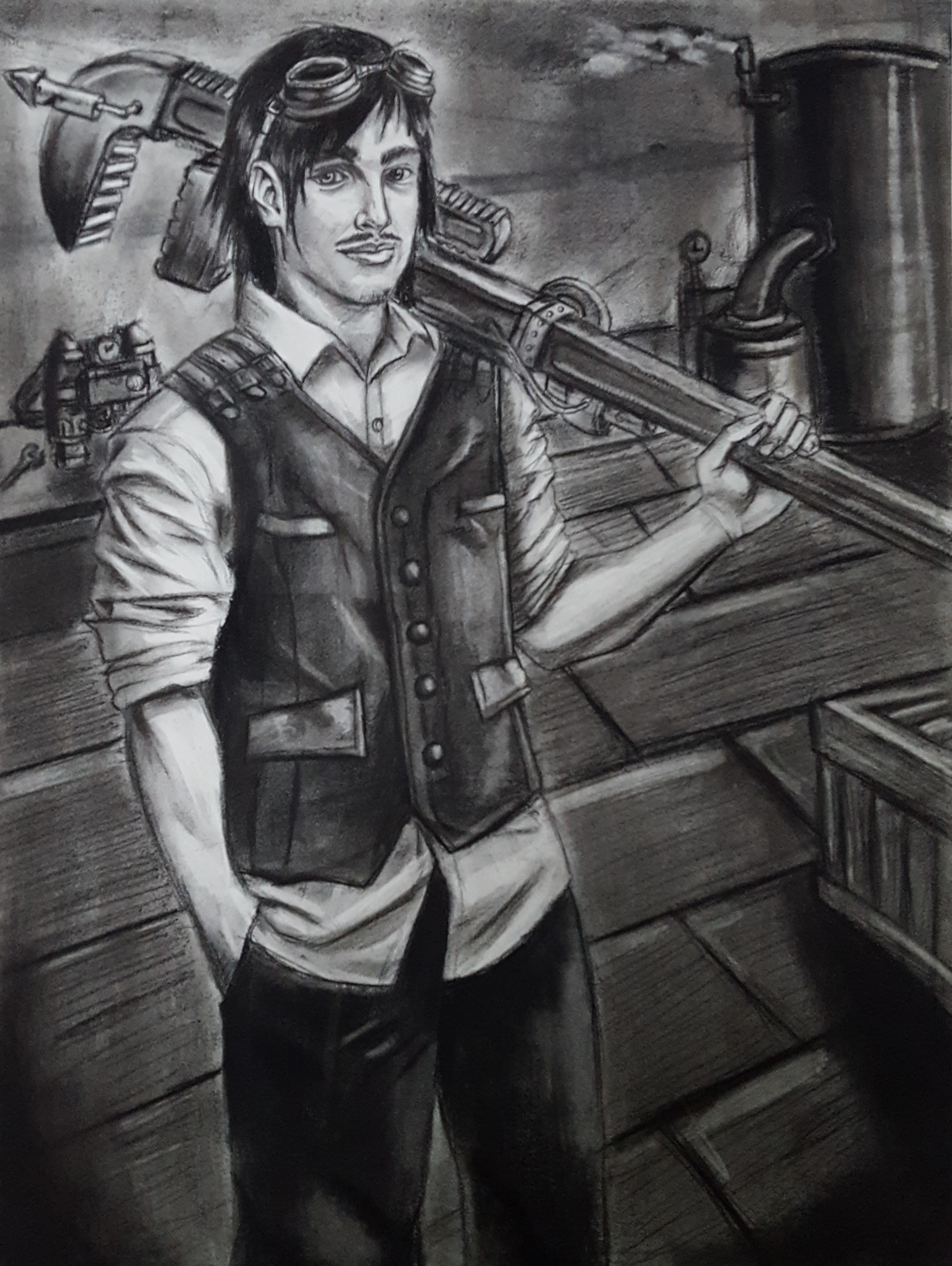 Inventor’s Workshop (Chip) Posted on January 14, 2017January 14, 2017 by chariloe Featured in my show, “Gilded Milieu”, which was about characters living in a steampunk world.