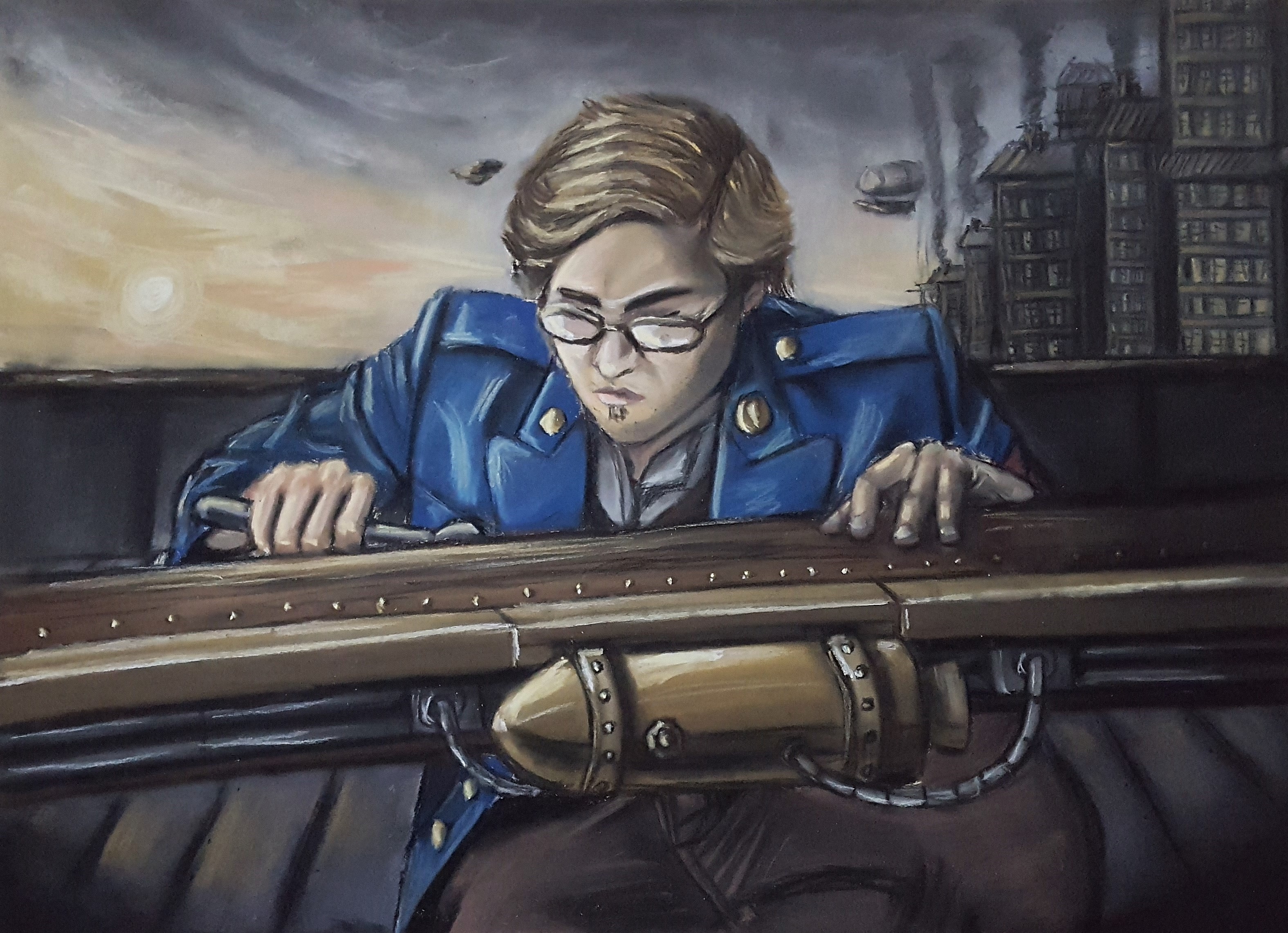 Repairing The Skyboard (Bastian) Posted on January 14, 2017January 14, 2017 by chariloe Featured in my show, “Gilded Milieu”, which was about characters living in a steampunk world.